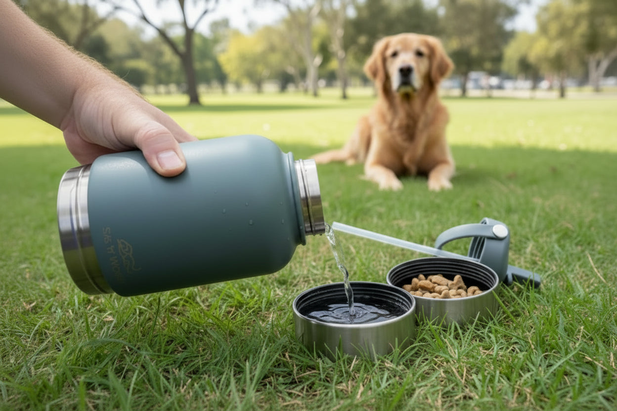 The Scout Adventure Bottle changes the game for dog owners on the go. With two detachable bowls built right in, you can carry water and food in one sleek, insulated bottle — no mess, no fuss. It keeps drinks cool for hours, looks incredible, and now comes with your choice of OG Straw Lid or Gulp Lid for quick, easy hydration. Smart, stylish, and made for Aussie dogs who love adventure — it’s the bottle you didn’t know you needed. 🐾